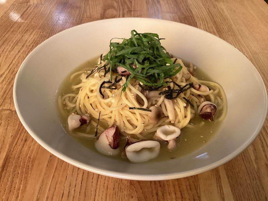 本日、9日(金)の日替りランチパスタは、ヤリイカと大葉の和風パスタです。