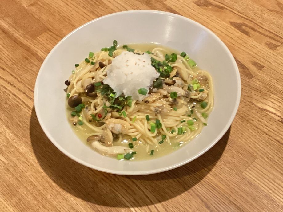 本日、21(水)の日替りランチパスタは、ホタテとおろしの和風パスタ(大葉とシラスのせ)です😁