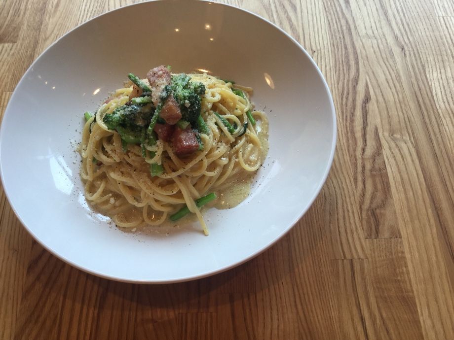 本日、1(日)の日替りランチパスタは、厚切りベーコンとほうれん草のクリームパスタです😁
