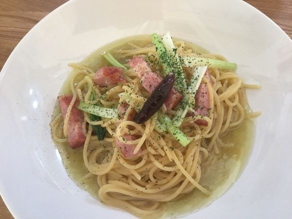 本日、27(金)の日替りランチパスタは、厚切りベーコンと小松菜のペペロンチーノです🥬🌶️