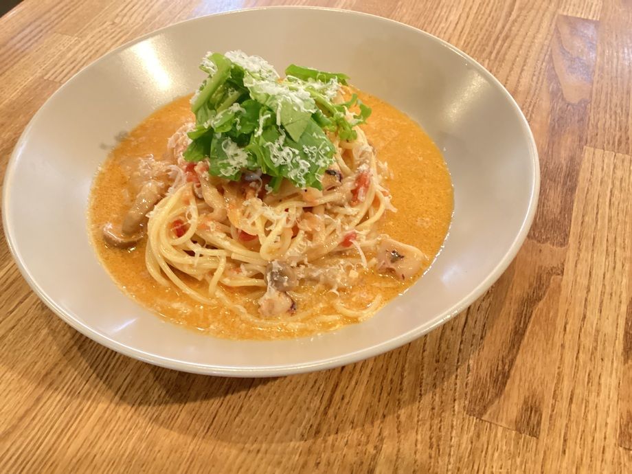 本日、5(木)の日替りランチパスタは、ホタテとルッコラのトマトクリームパスタです🍅
