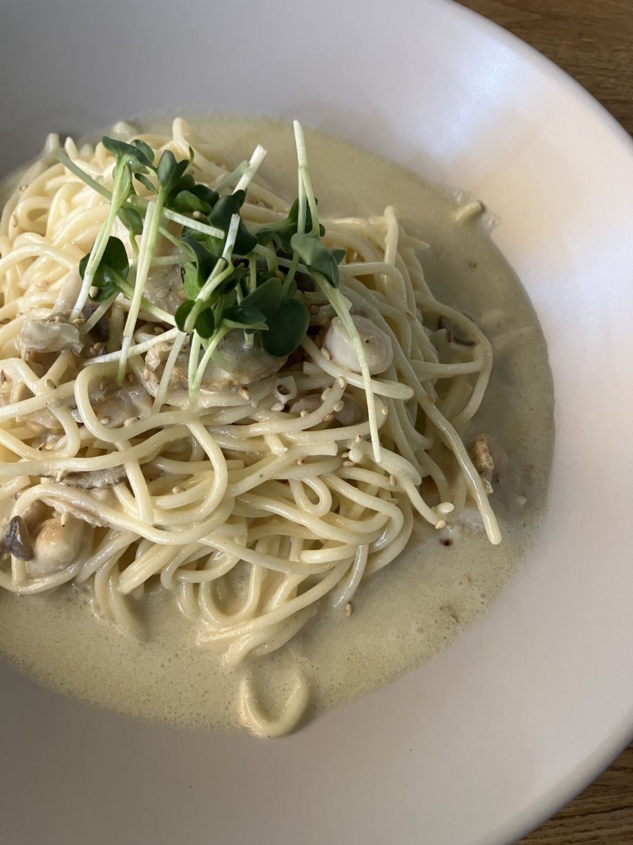 本日、14(土)の日替りランチパスタは、あさりの和風クリームパスタです🍝