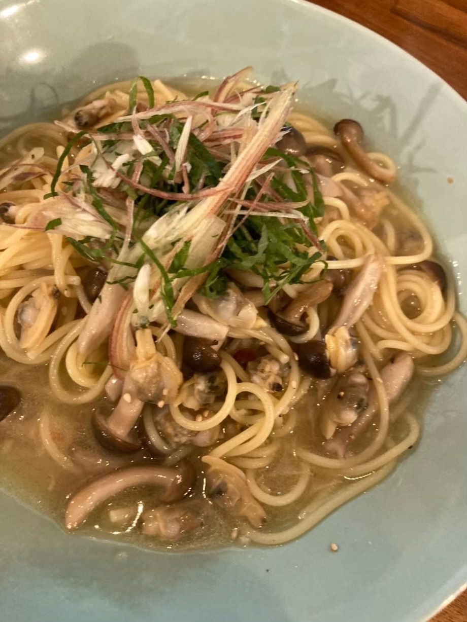 本日、19(木)の日替りランチパスタは、アサリと大葉・ミョウガの和風パスタです😁